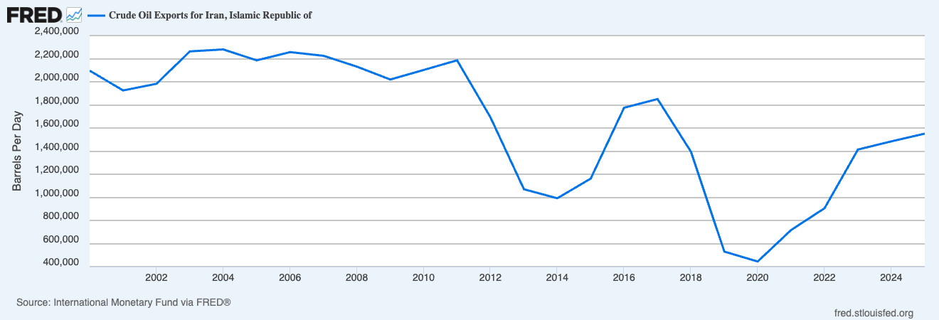 Chart of the week: Crude oil exports for Iran since 2002
